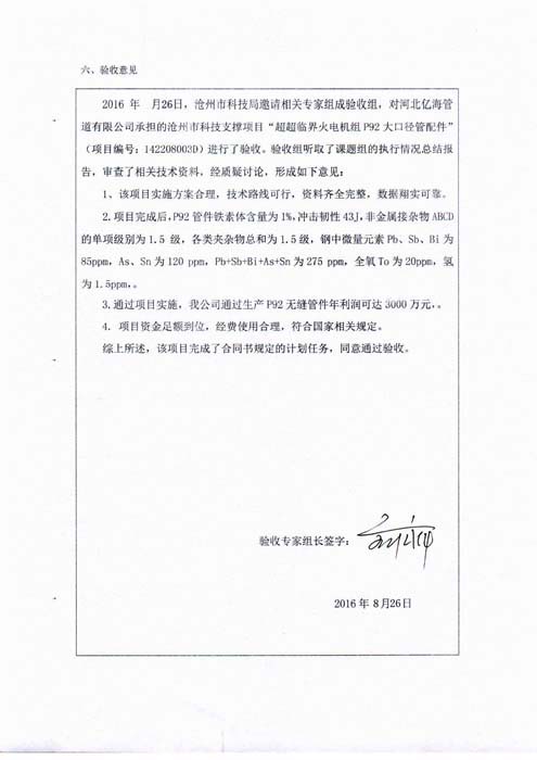 我公司自主研發(fā)的火力電站超超臨界P92大口徑管配件通過省專家組驗(yàn)收